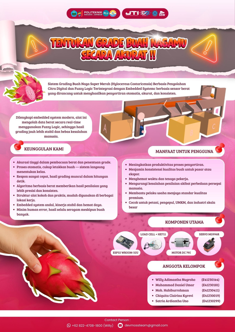 Aplikasi untuk grading buah naga super merah (Hylocereus costaricensis) yang memanfaatkan pengolahan citra digital dan Fuzzy Logic Mamdani untuk menilai kualitas buah berdasarkan ukuran dan estimasi beratnya. Sistem ini secara otomatis melakukan preprocessing, segmentasi buah, ekstraksi fitur (panjang, diameter, rasio, dan estimasi berat), lalu menentukan grade (A, B, atau C) menggunakan sistem fuzzy.