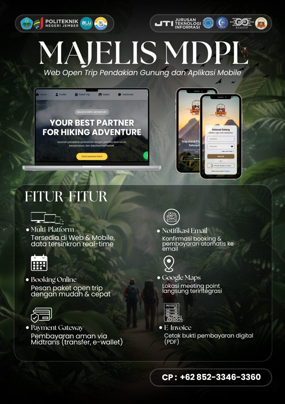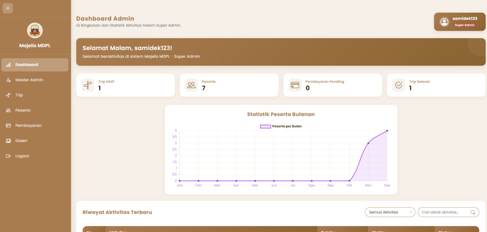 Majelis MDPL adalah komunitas pendakian dan penyedia jasa perjalanan outdoor yang didirikan pada 22 April 2025 🌄. Kami fokus menyediakan layanan open trip pendakian gunung, tour guide, dan porter untuk membantu pendaki pemula hingga berpengalaman 🏞️. Bersama tim profesional, kami memastikan setiap pendakian aman dan terencana, siap menemani petualanganmu menuju puncak 🏔️.