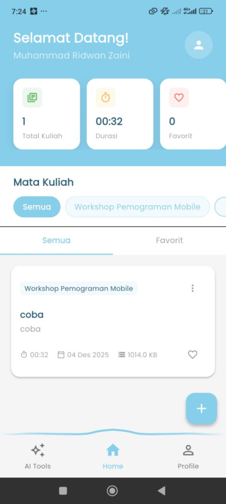 Sebuah alat yang berfungsi untuk merekam suara penjelasan dosen selama perkuliahan, kemudian mengubahnya menjadi teks (transkrip) secara otomatis menggunakan teknologi Artificial Intelligence (AI). Selain itu, alat ini juga mampu menghasilkan rangkuman serta poin-poin penting dari materi yang disampaikan, sehingga dapat membantu mahasiswa memahami dan mengulang kembali pembelajaran dengan lebih mudah dan efisien.