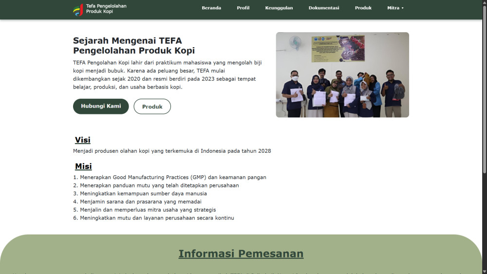 Website Company Profile TEFA Pengolahan Produk Kopi