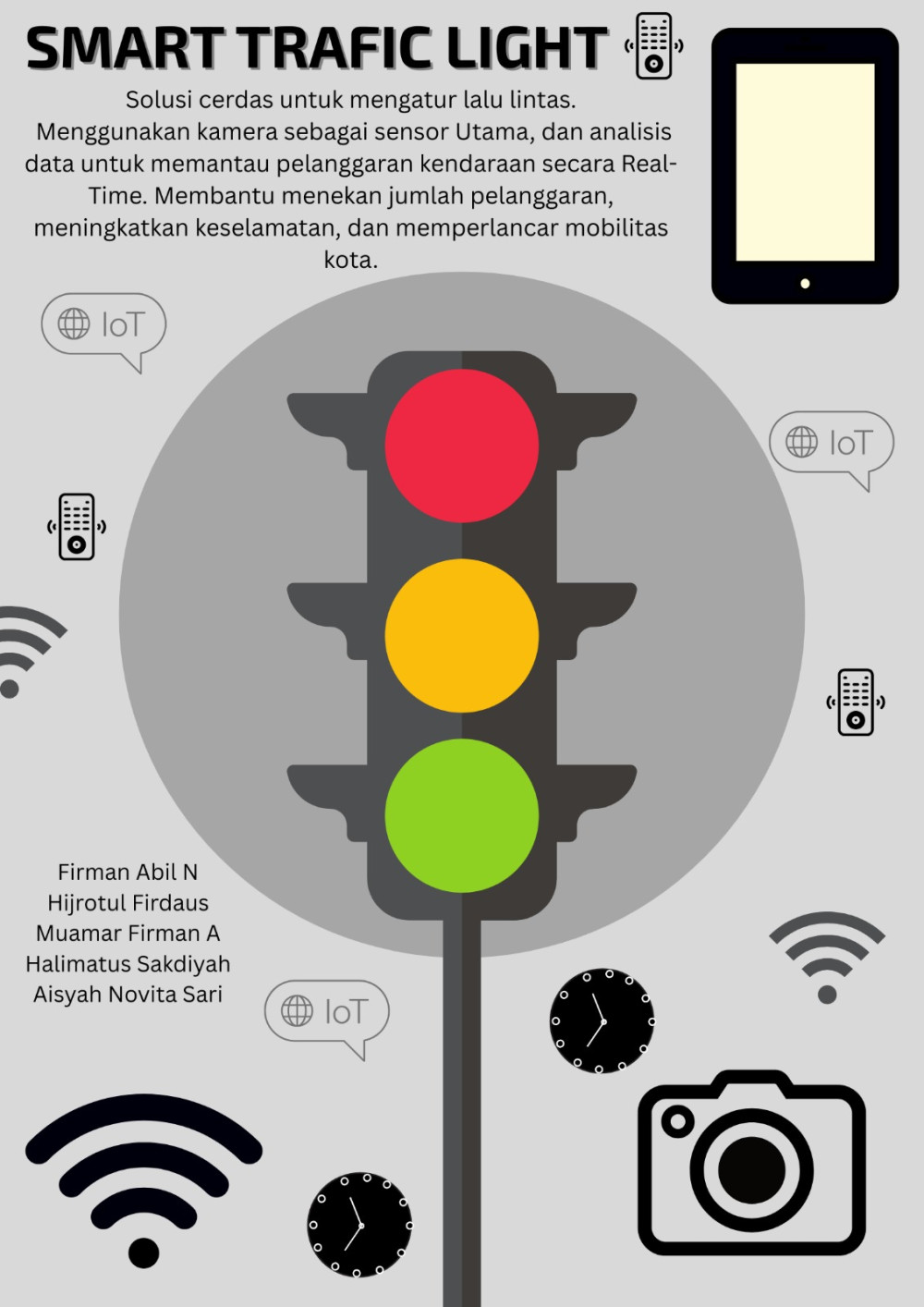 Smart Traffic Light adalah sistem keamanan lalu lintas pintar berbasis IoT yang secara otomatis mendeteksi dan memotret pengendara yang menerobos lampu merah menggunakan Raspberry Pi dan image processing (Computer Vision). Sistem ini terintegrasi dengan aplikasi ponsel via mqtt, memungkinkan Anda untuk memantau video secara live, menerima notifikasi pelanggaran seketika, serta mengendalikan mode lampu dan sirine dari jarak jauh.