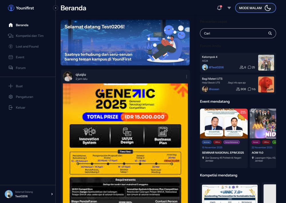 YOUNIFIRST: Platform Terpadu Mahasiswa untuk Event, Kompetisi, Lost & Found, dan Forum