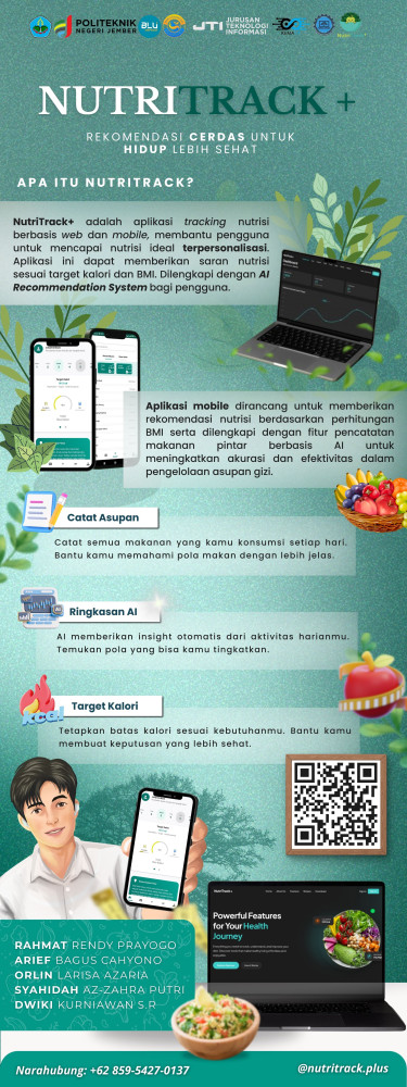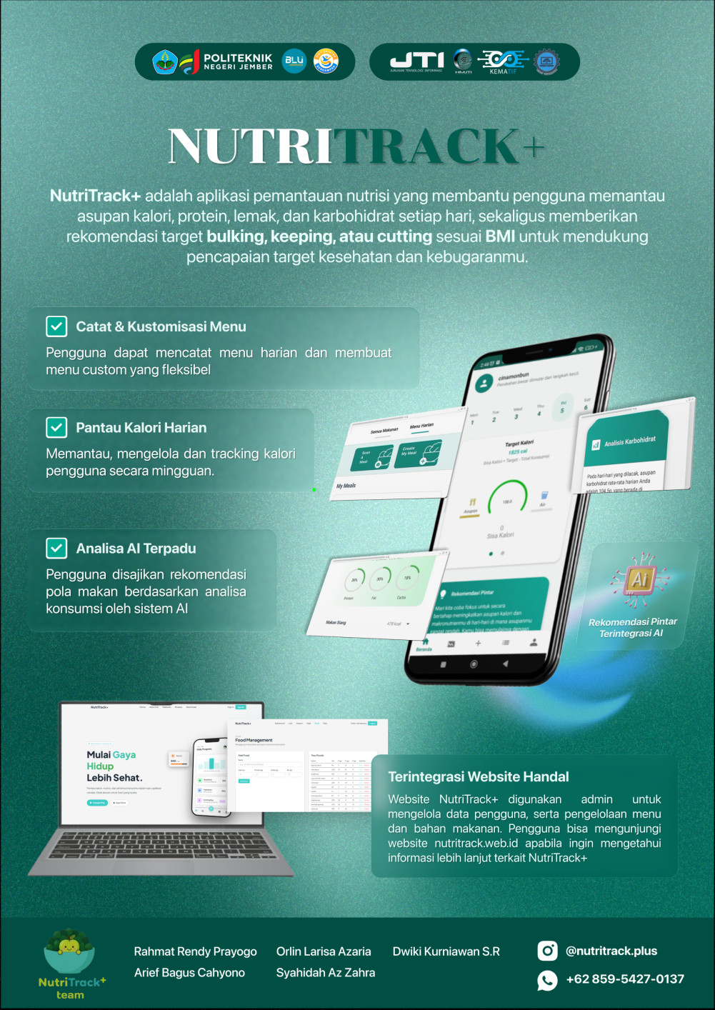 NutriTrack+ adalah platform pelacakan nutrisi modern yang diperkuat dengan teknologi AI Recommendation Engine, dirancang untuk membantu pengguna memahami kebutuhan gizi mereka dan menerima rekomendasi makanan yang lebih sehat berdasarkan data konsumsi harian, tujuan diet, serta pola kebiasaan makan.