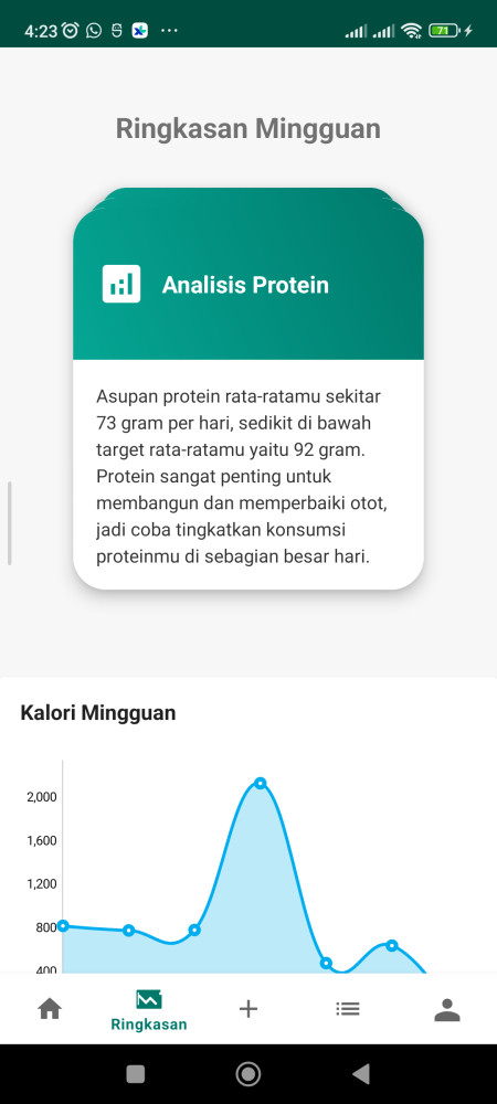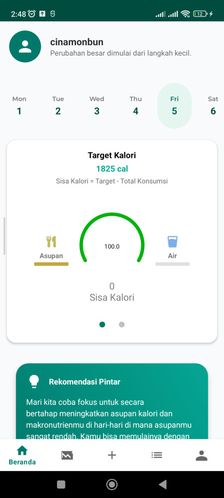 Platform ini tidak hanya mencatat konsumsi makanan, tetapi menganalisisnya secara cerdas dan memberikan rekomendasi yang dipersonalisasi untuk membantu pengguna mencapai target kesehatan — entah itu menurunkan berat badan, menjaga pola makan seimbang, atau meningkatkan massa otot.