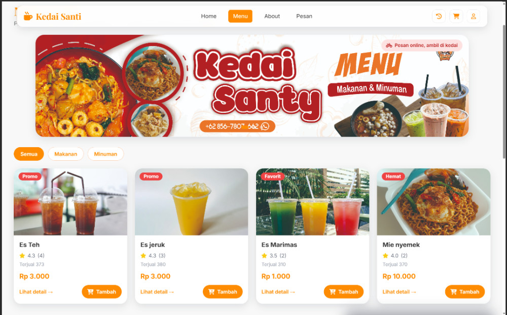 Melalui pengembangan ini, Kedai Santi bertujuan menjadi solusi digital yang membantu UMKM meningkatkan produktivitas, menekan kesalahan manual, serta memberikan pengalaman layanan yang lebih baik kepada pelanggan. Proyek ini dihadirkan sebagai kontribusi dalam meningkatkan kualitas literasi teknologi UMKM pada Java Tech Exhibition 3.0.