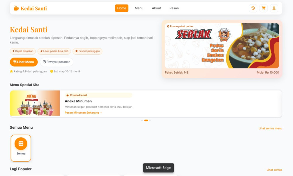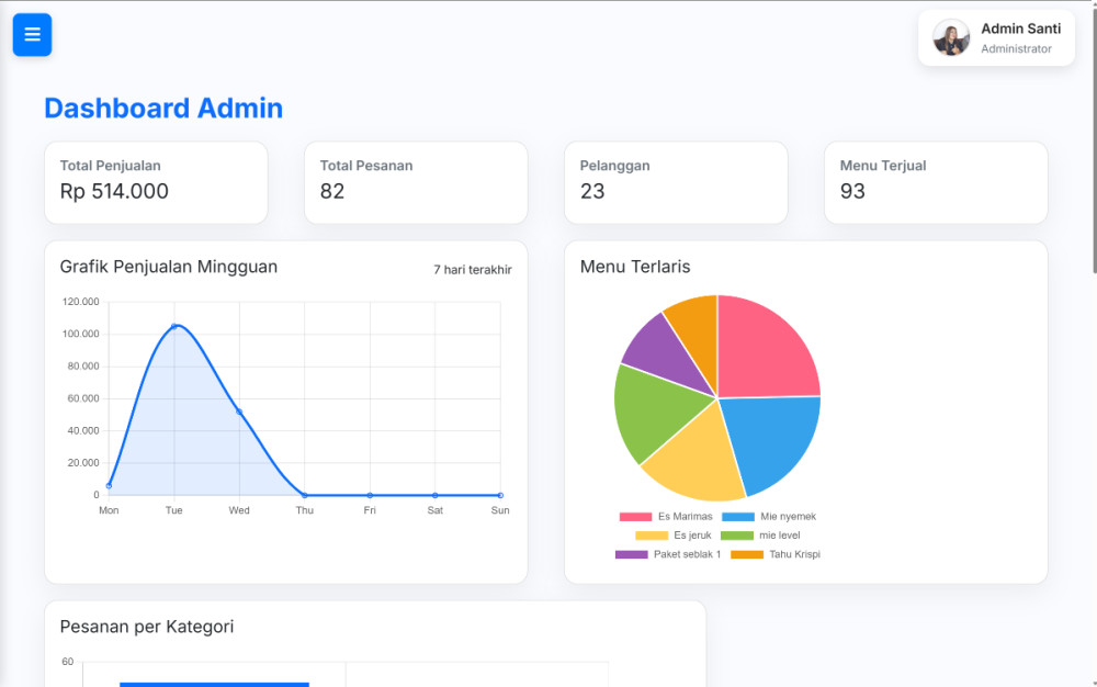 Selain itu, Kedai Santi menawarkan tampilan antarmuka yang sederhana namun profesional, sehingga pengguna dapat memahami alur penggunaan tanpa kesulitan teknis. Sistem ini juga mendukung proses digitalisasi UMKM, mulai dari otomasi pencatatan data hingga pelaporan yang lebih akurat.