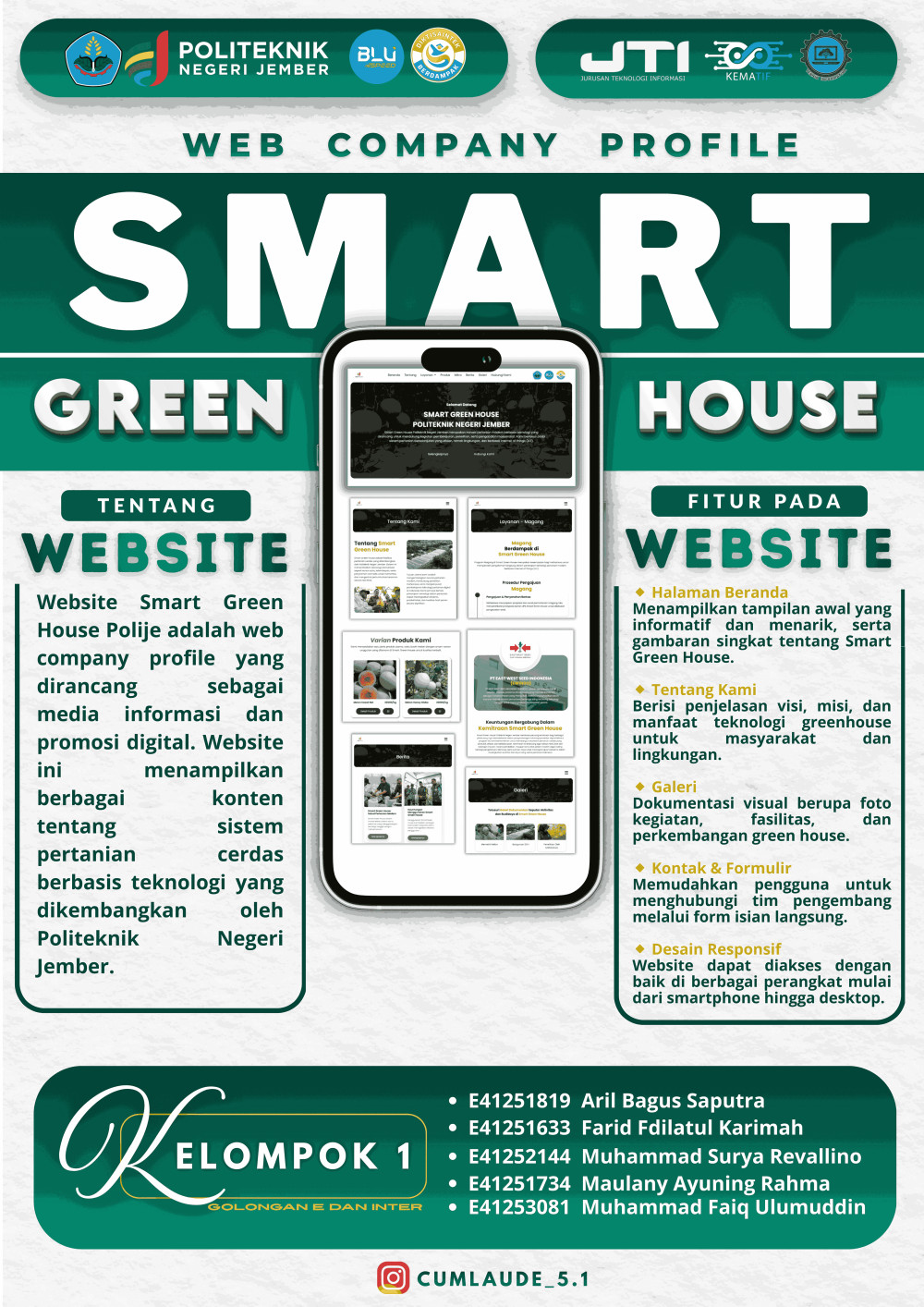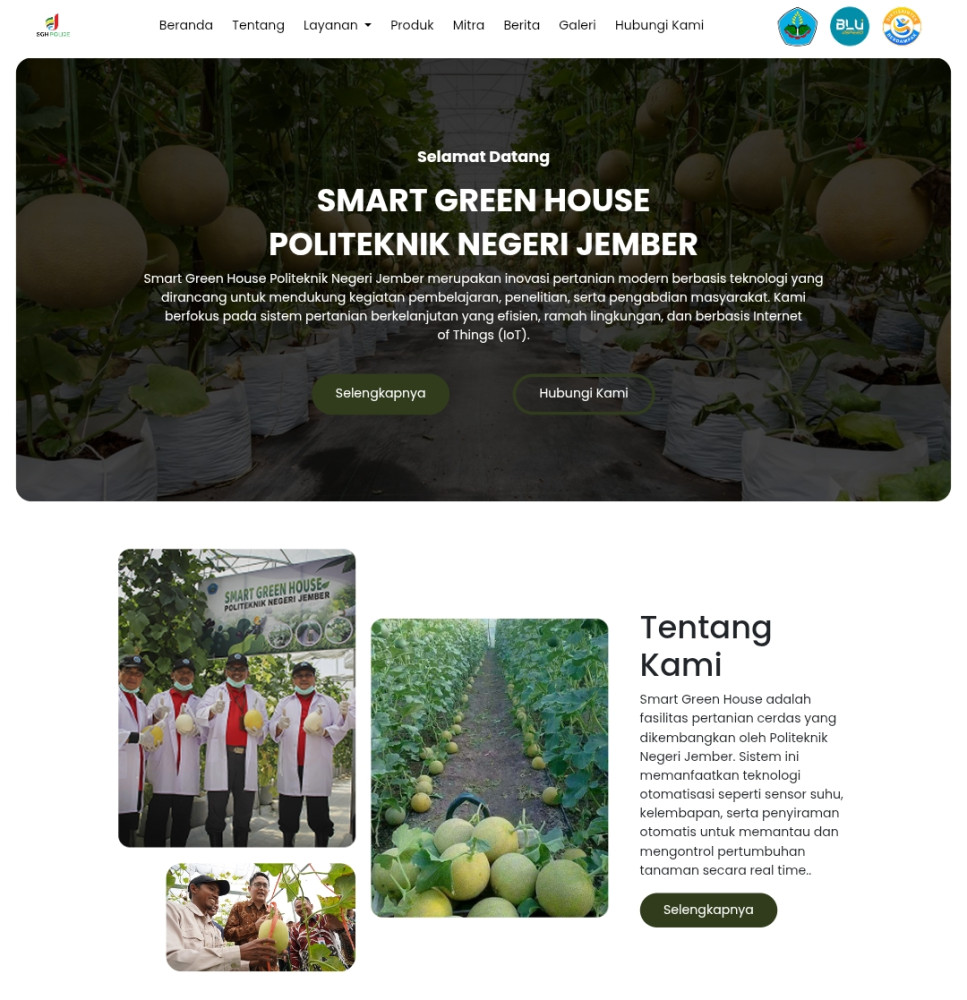 Website Smart Greenhouse merupakan platform digital yang dirancang untuk memperkenalkan layanan, teknologi, serta keunggulan sistem rumah kaca cerdas kepada masyarakat, mitra, dan calon pengguna. Website ini berfungsi sebagai wajah resmi perusahaan.