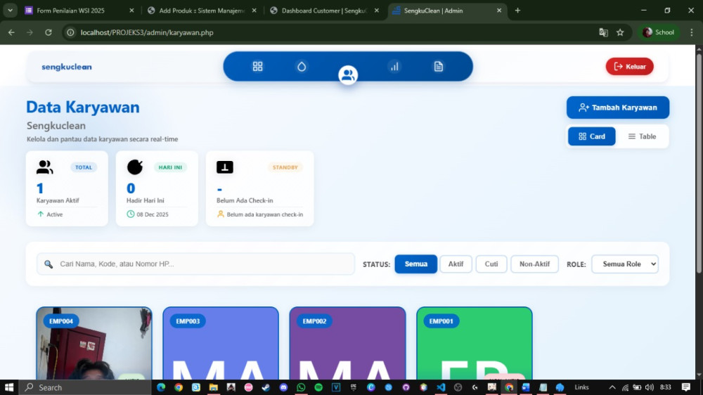 Mengatur data karyawan,menambahkan karyawan, absen karyawan, serta pembagian tugas dalam proses laundry sepatu.