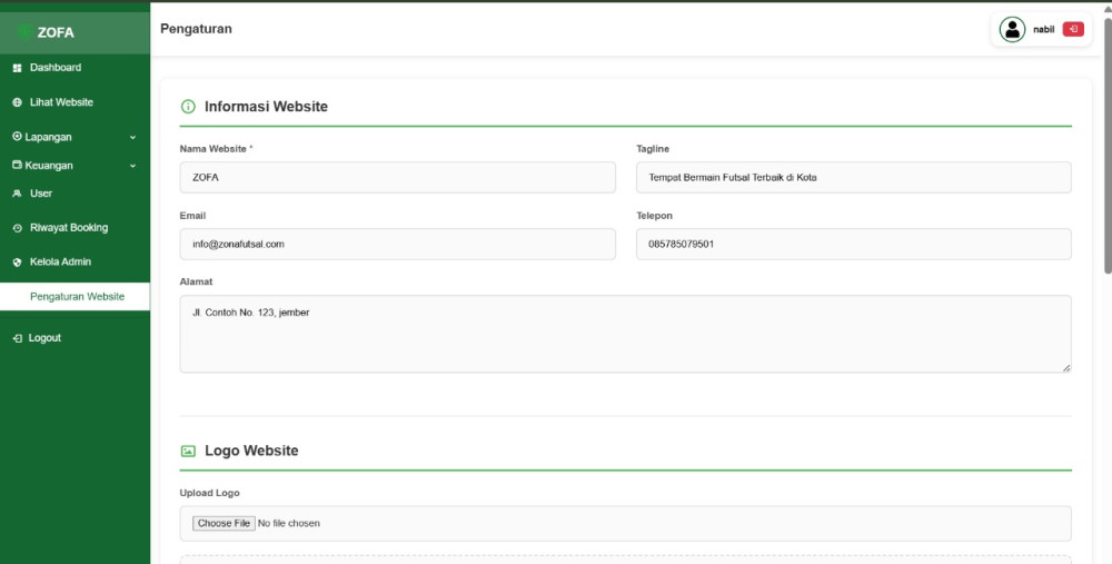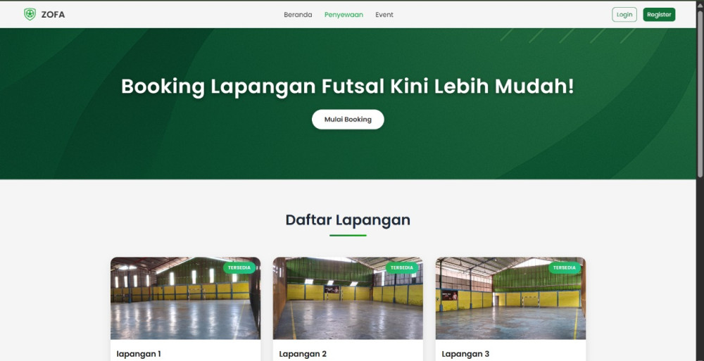 Zofa - Website Layanan Booking Lapangan Futsal Online