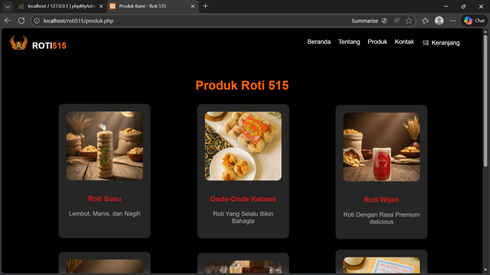 Website UMKM Roti 515 adalah Website yang di buat untuk membantu pelaku usaha memperkenalkan produk roti mereka secara lebih luas. Dengan tampilan yang sederhana dan mudah digunakan, pelanggan dapat melihat katalog roti, informasi usaha, dan melakukan pemesanan roti secara online dengan cepat dan praktis.