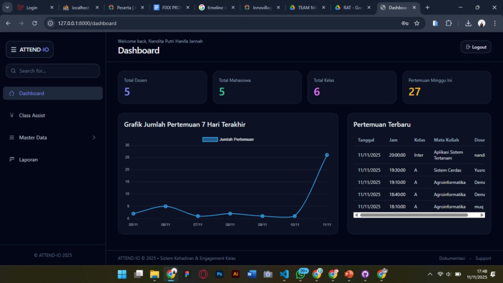 ATTEND-IO adalah sistem presensi cerdas yang menggabungkan Computer Vision, IoT, dan Machine Learning untuk menghadirkan pengalaman belajar yang lebih efisien, otomatis, dan aman. Proyek ini dirancang untuk menggantikan metode presensi manual yang lambat, rawan kesalahan, dan sulit dikelola.