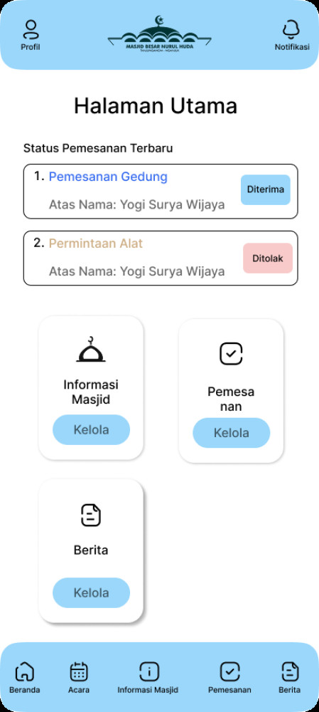 * Kelola Pemesanan persewaan sarana dan prasarana masjid