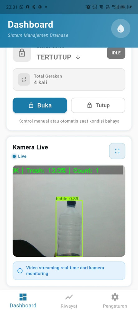 Smart Drain adalah sistem penyaring sampah otomatis berbasis IoT yang memakai kamera dan sensor untuk mendeteksi sampah serta memonitor ketinggian air. Sistem ini membantu menjaga kebersihan drainase dan mencegah penyumbatan.