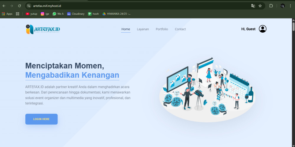 Kolaborasi dengan Artefax.id memberi nilai tambah berupa integrasi standar profesional dalam manajemen multimedia, baik untuk kebutuhan event, dokumentasi, maupun produksi konten. Sistem ini mendukung multi–role (admin, kru lapangan, dan pelanggan) sehingga setiap pihak hanya mengakses fitur yang relevan: pengelolaan penuh bagi admin, jadwal & absensi bagi kru, serta pemesanan cepat bagi pelanggan.