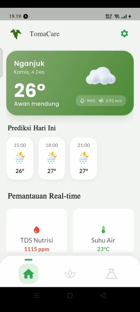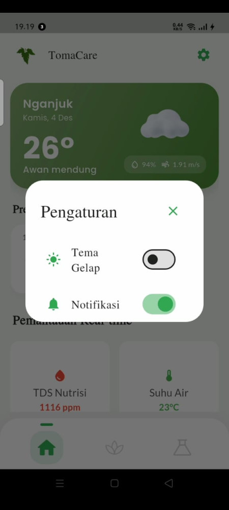 TomaCare bekerja dengan mengintegrasikan sensor TDS, sensor suhu air, sensor ultrasonik, dan kamera untuk memantau kondisi tanaman tomat secara real-time. Data dari sensor dan hasil pemindaian daun diproses oleh sistem dan ditampilkan dalam aplikasi mobile dalam bentuk informasi kondisi tanaman, hasil analisis, serta notifikasi. Sistem otomatis akan menyesuaikan penambahan nutrisi ketika TDS berada di luar batas ideal DAN kamera mendeteksi kurang nutrisi, sehingga membantu pengguna menjaga kesehatan tanaman tomat secara lebih efektif dan efisien.