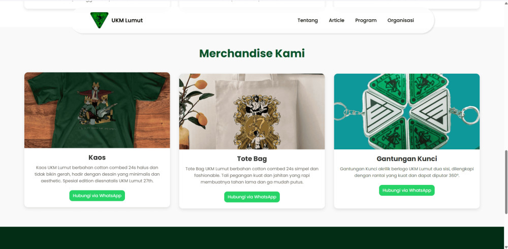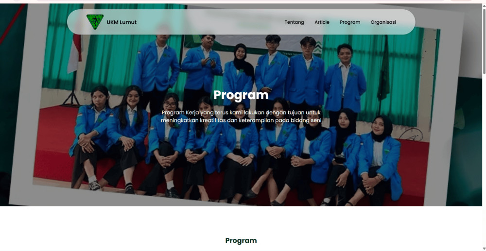Website company profile UKM Lumut adalah website yang kami kembangkan untuk memenuhi tugas projectm. Secara fungsi website kami sendiri bertujuan untuk memberikan informasi secara digital tentang UKM Lumut yang dapat diakses di platform manapun. Fitur yang ada pada web kami antara lain adalah Homepage, Tentang, Artikel, Program, Organisasi dan Kontak.