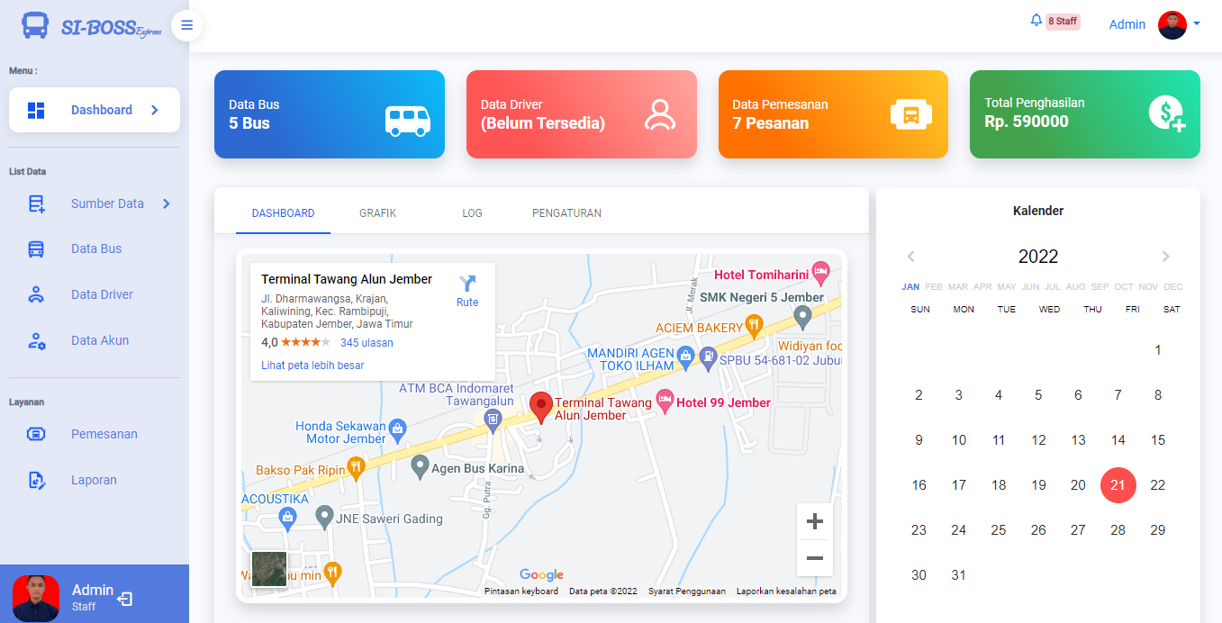 SI-BOSS Express merupakan sebuah Sistem Informasi Booking Tiket Bus Online yang ditujukan kepada terminal di seluruh Indonesia, platform yang kami buat merupakan platform berbasis Website dan Mobile dimana dapat digunakan oleh siapapun, kapanpun dan dimanapun dapat diakses dengan mudah. Dengan adanya sistem informasi berupa platform Website dan Mobile yang kami buat diharapkan dapat digunakan oleh masyarakat umum supaya lebih sering menggunakan transportasi umum, untuk mengurangi kemacetan, polusi asap kendaraan dan sistem informasi bus yang belum tersedia hingga saat ini dibandingkan dengan transportasi yang lain yaitu kereta api dan pesawat.
