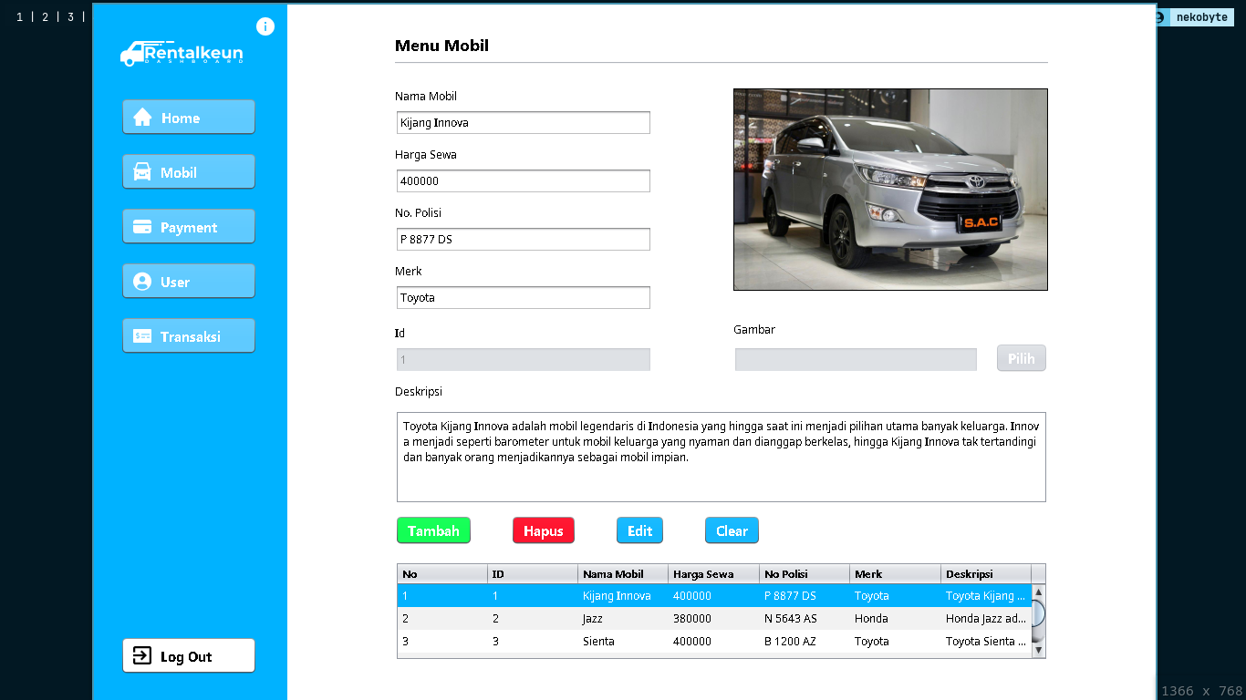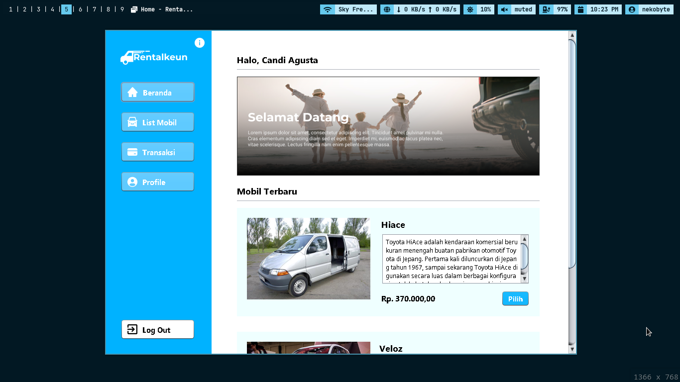 Rentalkeun adalah aplikasi rental mobil berbasis desktop yang dibuat menggunakan Java Swing. Aplikasi ini dibuat dengan tujuan untuk memudahkan pengguna dalam merental mobil terutama untuk pengguna yang rumahnya jauh sekali dari tempat rental. Dengan menggunakan aplikasi ini, pengguna juga akan jauh lebih mudah dan menghemat waktu.
