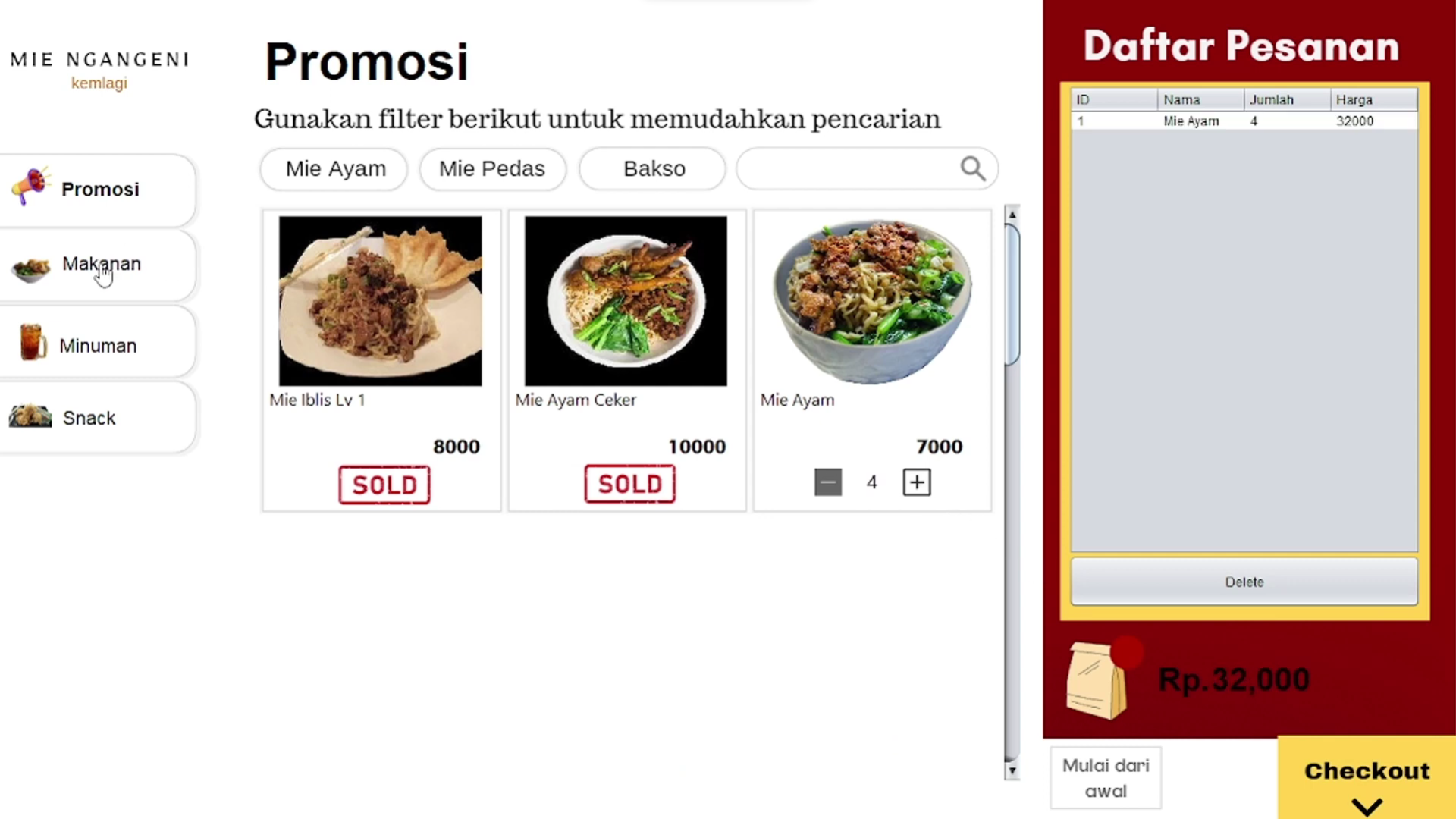Aplikasi Pemesanan Makanan Warung Mie Ngangeni Berbasis Desktop dapat menjadi solusi dari permasalahan-permasalahan tersebut. Aplikasi ini memiliki fitur dan kegunaan diantaranya: